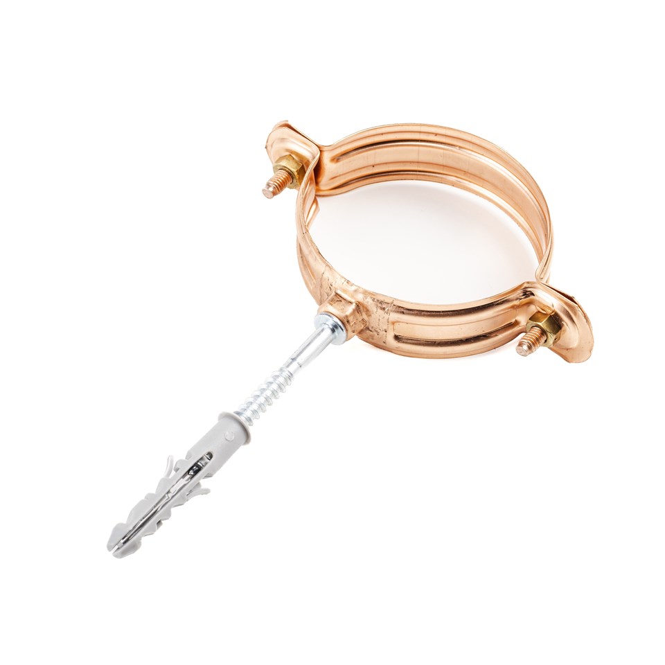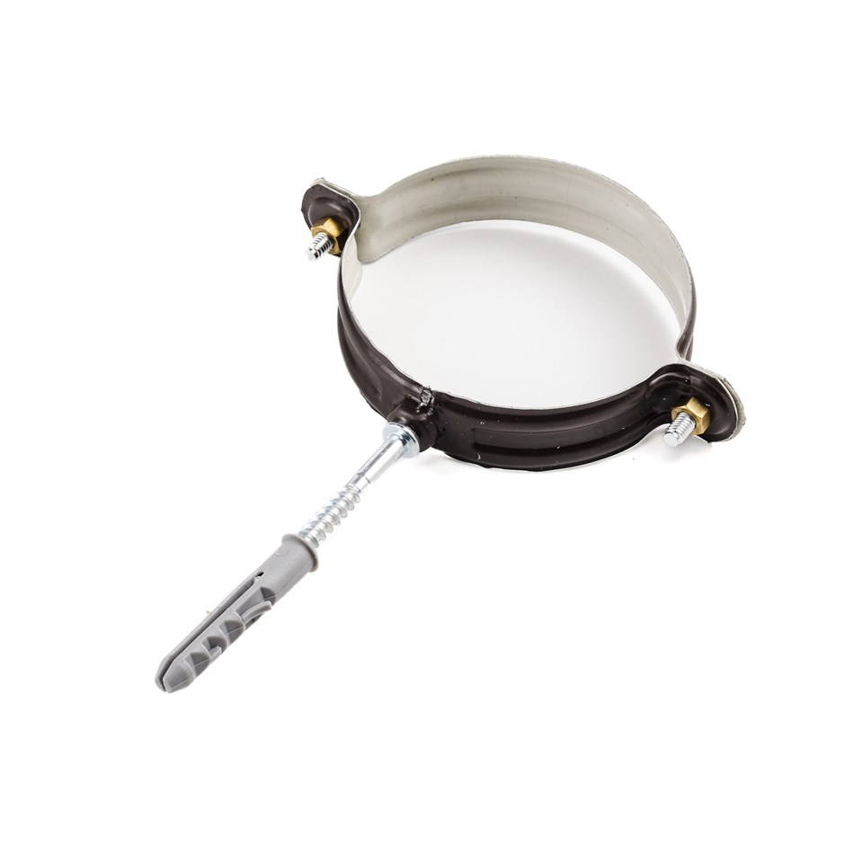 Elemento di raccordo per trattenere il pluviale dalla giusta distanza dal muro, sostenendolo staticamente fissato al muro tramite tassello Caratteristiche: - Spessore 8/10 - Dado M6 ribattuto al collare